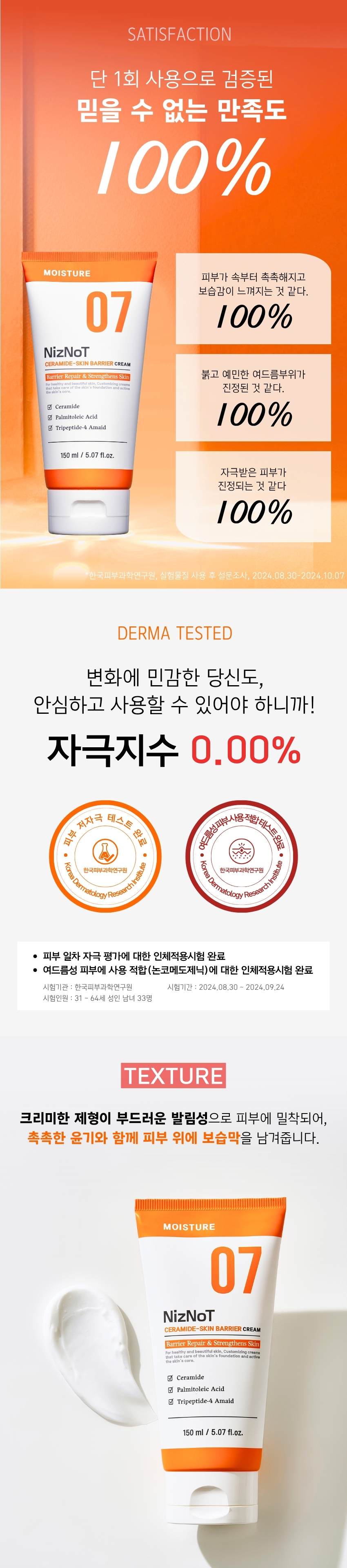 외부 환경으로부터 민감해진 피부를 진정 시켜주고 촉촉한 보습력과 탄탄한 피부 장벽을 완성시켜 건강한 피부 환경을 위한 유수분 밀도를 균형있게 채워주는 니즈낫 보습 장벽 크림